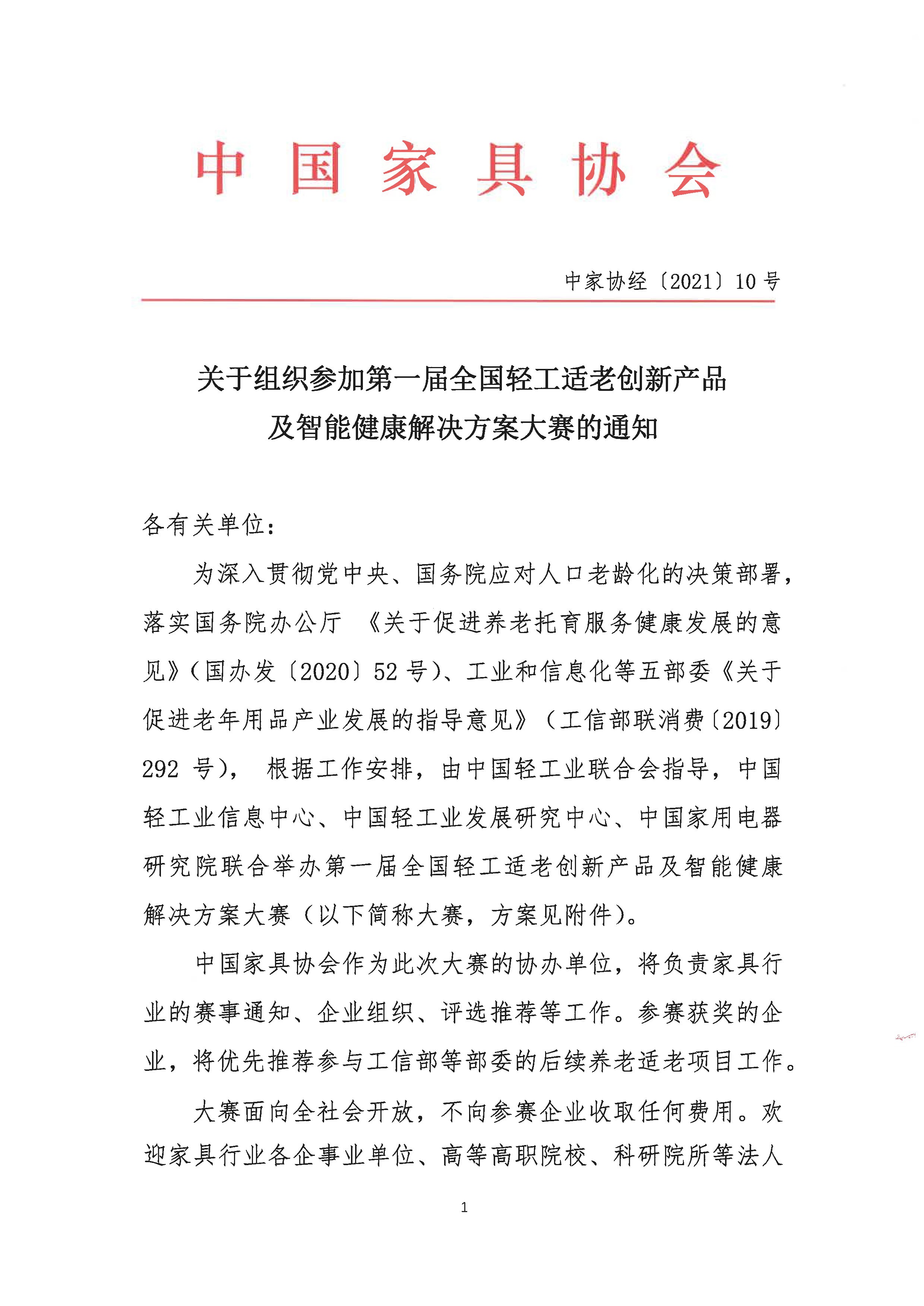 关于组织参加第一届全国轻工适老创新产品及智能健康解决方案大赛的通知