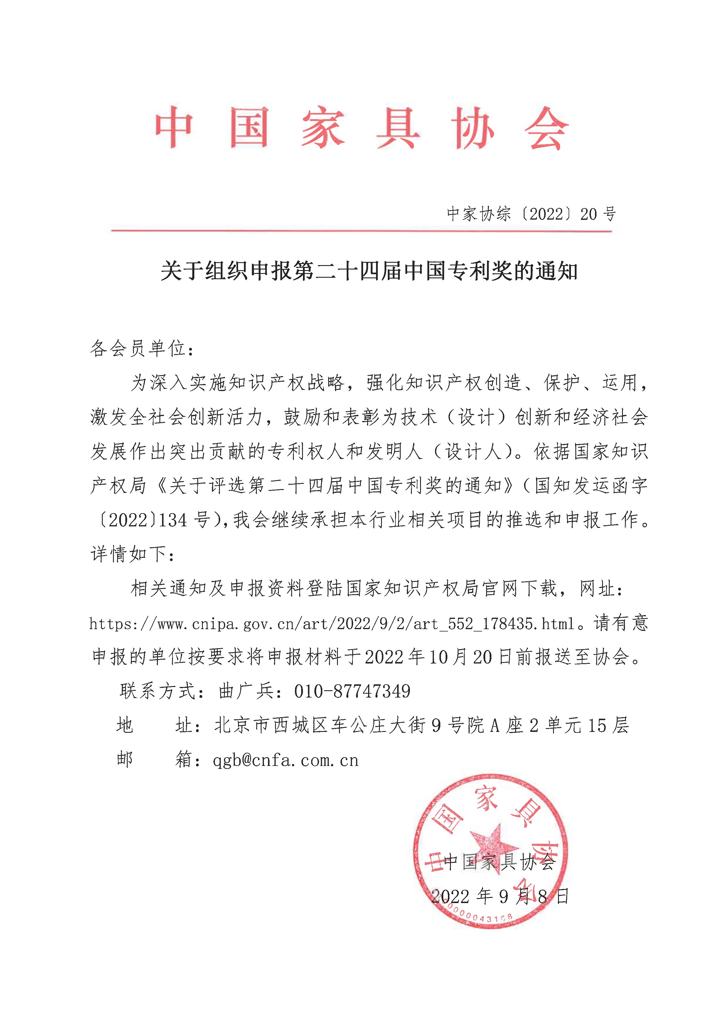 关于组织申报第二十四届中国专利奖的通知