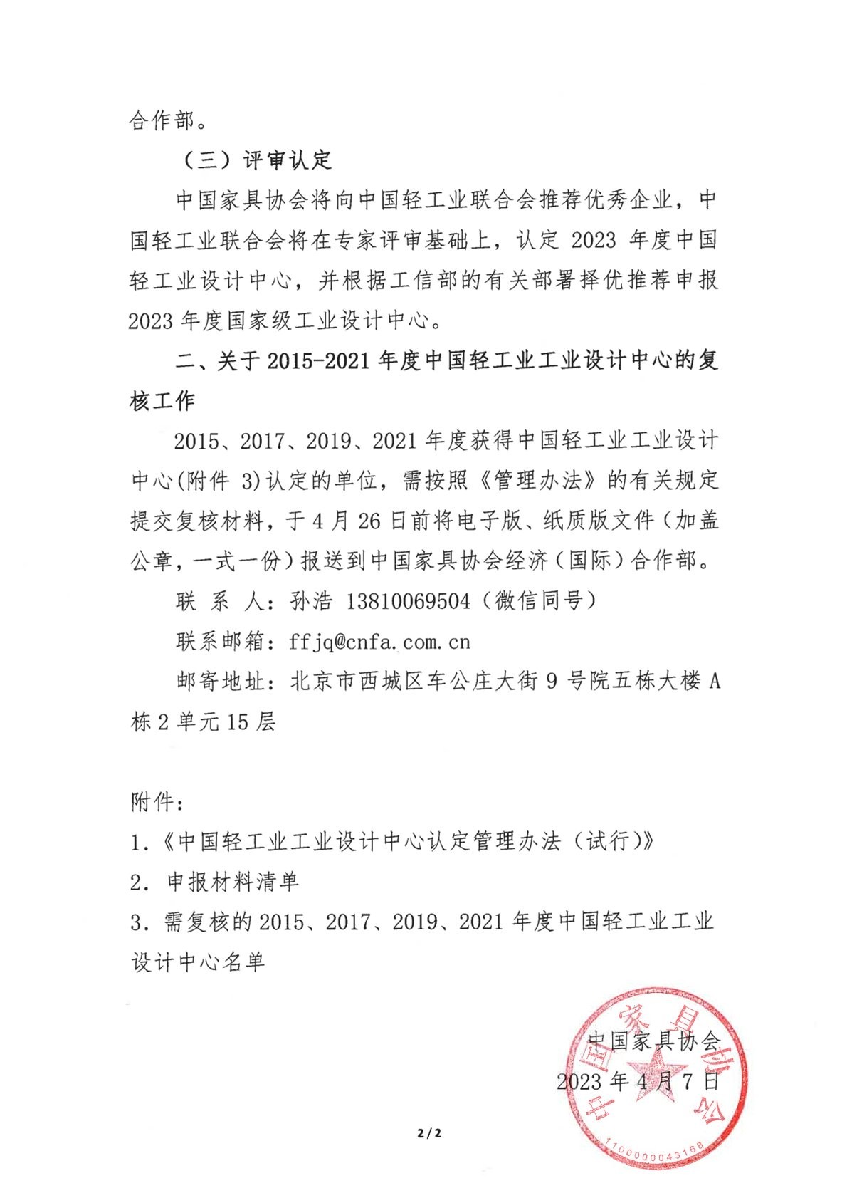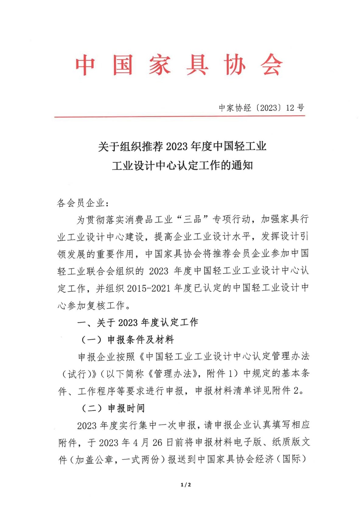 关于组织推荐2023年度中国轻工业工业设计中心认定工作的通知