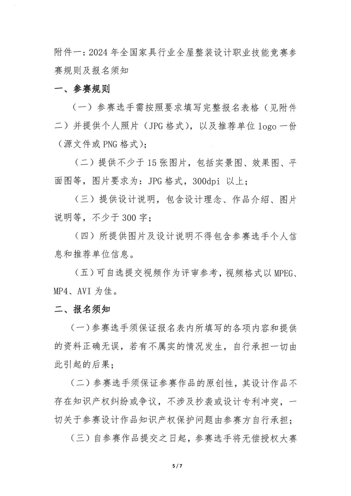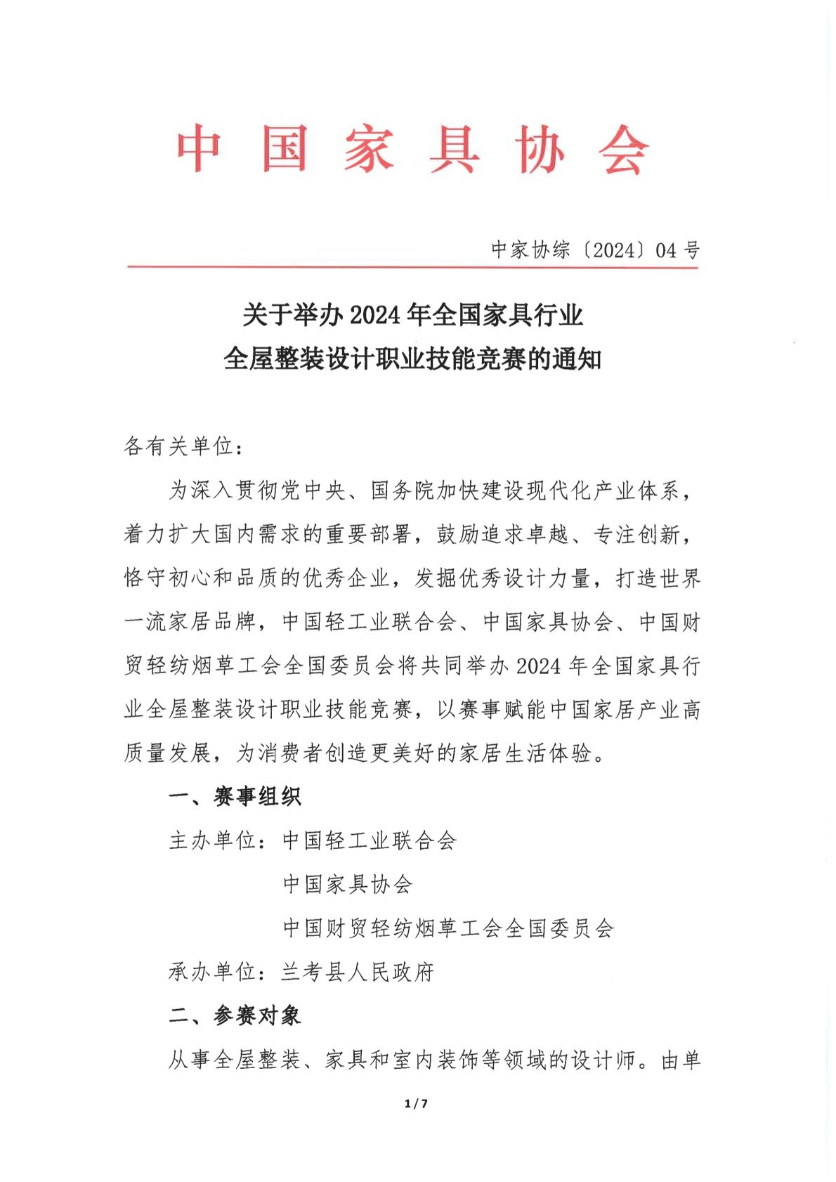 关于举办2024年全国家具行业全屋整装设计职业技能竞赛的通知