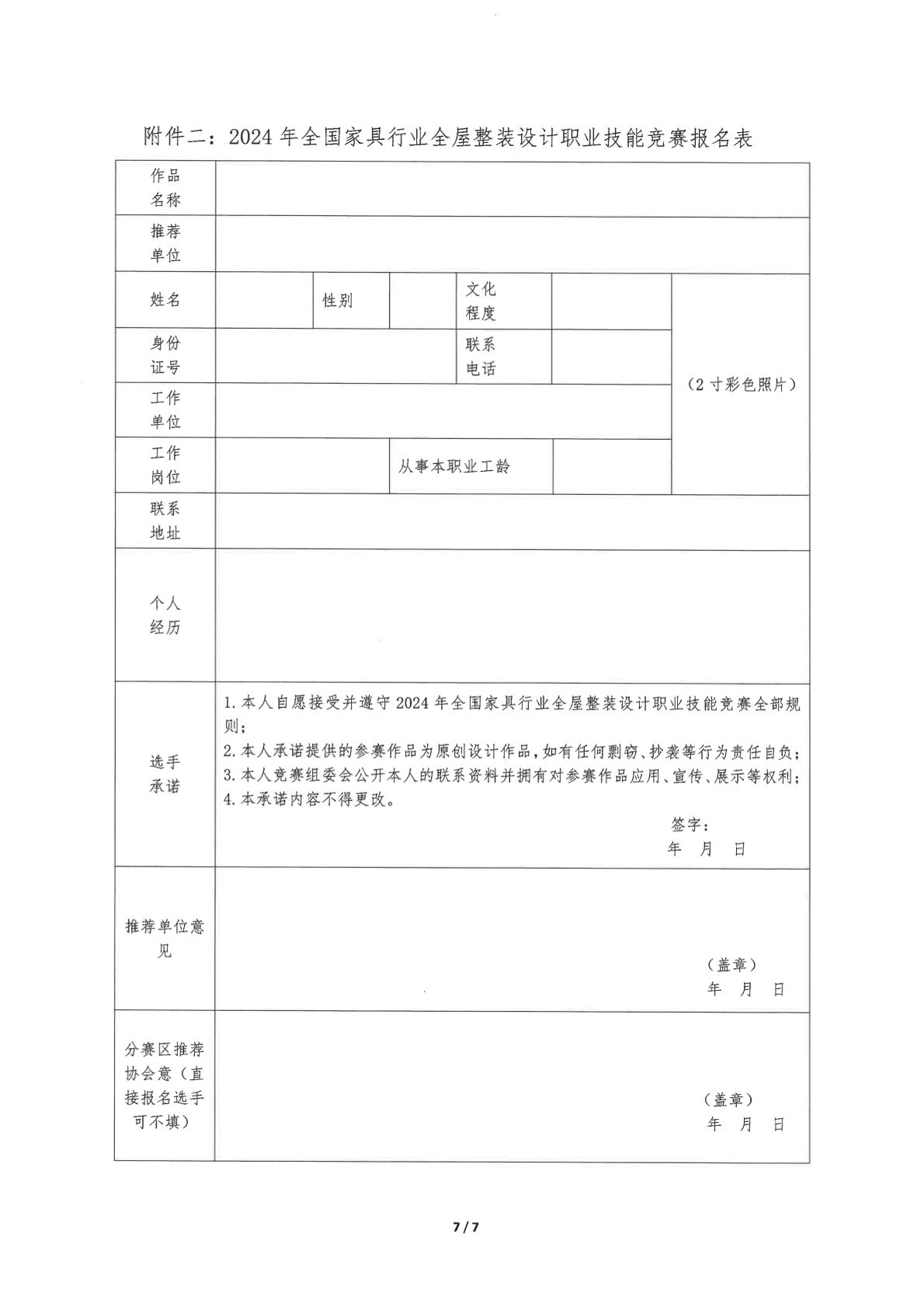 附件二:2024年全国家具行业全屋整装设计职业技能竞赛报名表