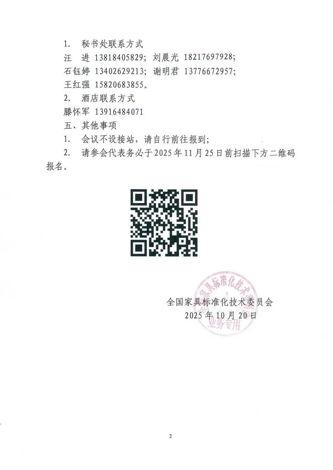 关于召开“全国家具行业标准化工作会暨全国家具标准化技术委员会第四届二次全体委员会议”的通知