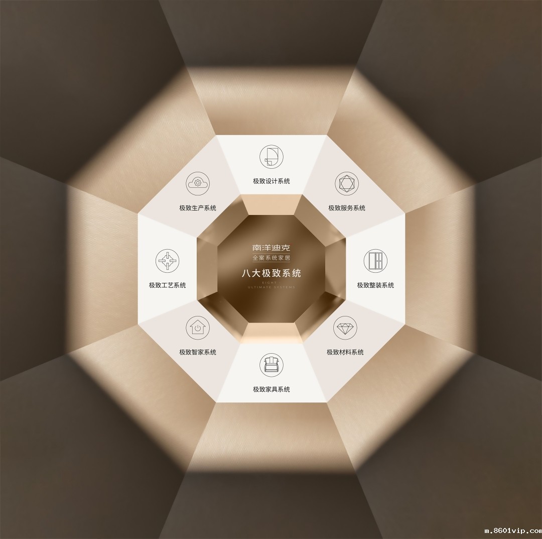 A:今年,我们将“南洋迪克整装家居”正式升级为“南洋迪克全案系统家居”。这不是简单的一个改名,而是未来锚定“全案系统”这一核心方向,通过八个系统维度的极致雕琢,建立南洋迪克的核心竞争力,这八大极致系统是: