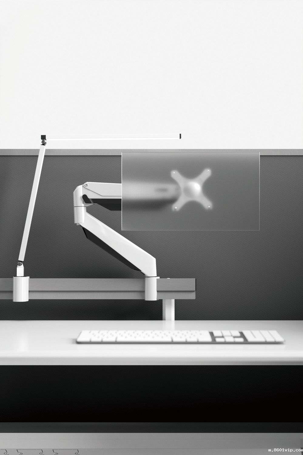桌面可配置铝合金横梁,承载显示器支撑臂、Inbox收纳盒、台灯等周边产品,且依使用需要在横梁上灵活移动。