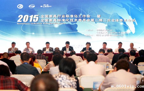 大会由上海市质量监督检验技术研究院院长、全国家具标委会副主任委员季飞主持,成都市崇州市市委副书记杨火清以及明珠家具股份有限公司董事长王建兵分别致词。中国轻工业联合会质量标准部主任查长全、中华人民共和国工业和信息化部科技司处长盛喜军等有关领导在会上对家具标委会的发展、标准体系的建设、家具行业标准制修订等标准化工作先后作了重要讲话。中国轻工业联合会质量标准部主任查长全宣读了《关于调整全国家具标准化技术委员会委员的复函》,新利18在线登录理事长、家具标委会主任委员朱长岭宣布了2015年家具标委会新进观察员单位名单。