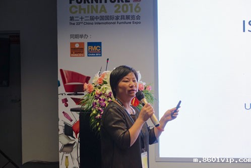 上海市质量监督检验技术研究院教授级高级工程师、全国家具标准化技术委员会秘书长罗菊芬女士,代替国际家具标准化技术委员会主席Marco Fossi讲解国际家具标准化技术委员会ISO TC163交流材料。