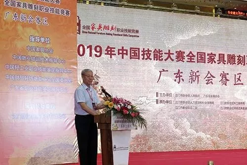 10月16日,2019中国技能大赛——第二届全国家具雕刻职业技能竞赛广东新会赛区选拔赛在新会古典家具城拉开帷幕,60余名家具雕刻精英同台比拼,竞逐“工匠之星金、银、铜奖”等奖项。本次选拔赛由江门市新会区人民政府、广东省家具协会主办,新会区人力资源和社会保障局、新会区科工商务局、新会区总工会、新会区传统古典家具行业协会承办,新利18在线登录、中国轻工业联合会、中国就业培训技术指导中心、中国财贸轻纺烟草工会全国委员会、广东省职业技能鉴定指导中心指导。新利18在线登录专家委员会副主任刘金良、广东省家具协会会长王克、江门市人力资源和社会保障局副局长曹志明、江门市工业和信息化局副局长莫兆汉、新会区人大常委会副主任李俊杰、新会区副区长胡悦玲、新会区政协副主席黄寿根、江门市总工会调研员罗荣华、新会区人力资源和社会保障局局长伍伯良、新会区科工商务局局长何卫东、新会区总工会常务副主席冯培枝、新会区传统古典家具行业协会会长黄惠满等,以及江门市有关部门领导和新会区各有关单位领导出席了开幕式。