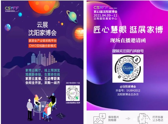本届沈阳家博会,实现线上线下实时互动。“云展沈阳家博会”线上云展厅,在展会期间开启线上品牌推介与销售的直播,帮助企业拓展了市场的新渠道。同时沈阳家博会官方抖音账号“SYJBH2012”也在展期开启线上同步直播,线上线下互通互联,开启观展新途径!