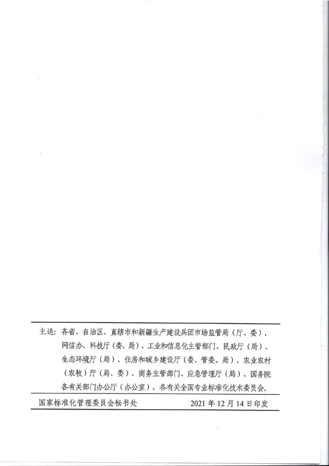 各省、自治区、直辖市和新疆生产建设兵团市场监管局(厅、委)、网信办、科技厅(委、局)、工业和信息化主管部门、民政厅(局)、生态环境厅(局)、住房和城乡建设厅(委、管委、局)、农业农村(农牧)厅(局、委)、商务主管部门、应急管理厅(局),国务院各有关部门办公厅(办公室),各有关全国专业标准化技术委员会: