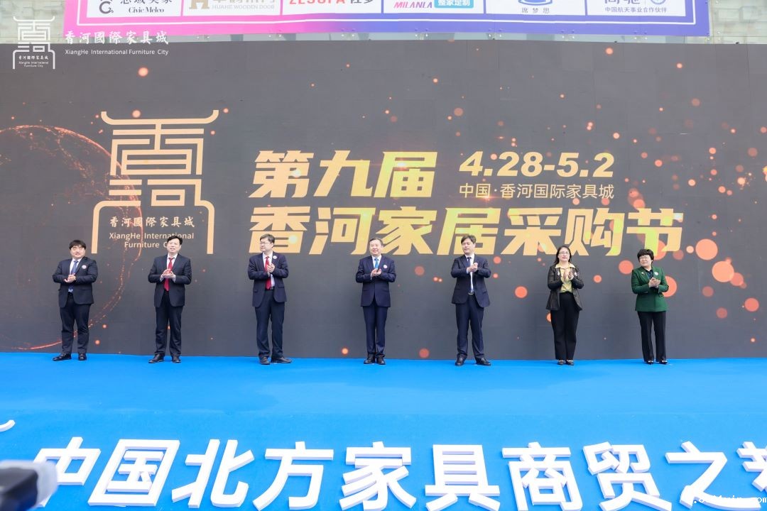 4月28日,第九届香河家居采购节盛大开幕。中国轻工业联合会党委副书记、世界家具联合会主席、亚洲家具联合会会长、新利18在线登录理事长徐祥楠,香河县政府县长、经开区管委会主任李海滨,新利18在线登录副理事长张冰冰,河北家具协会会长李凤婕,天津家具协会会长高秀芝,湖北省家具协会会长谢文桥,江西省家具协会会长刘伟,湖南省家具协会执行会长刘发刚等省市协会领导嘉宾,全国家具经销商、香河国际家具城商场商户以及家具企业代表出席开幕式。