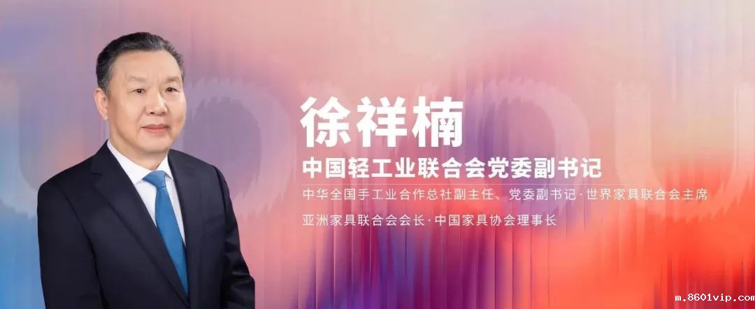 中国轻工业联合会党委副书记/中华全国手工业合作总社副主任、党委副书记/世界家具联合会主席/亚洲家具联合会会长/新利18在线登录理事长 徐祥楠先生致贺