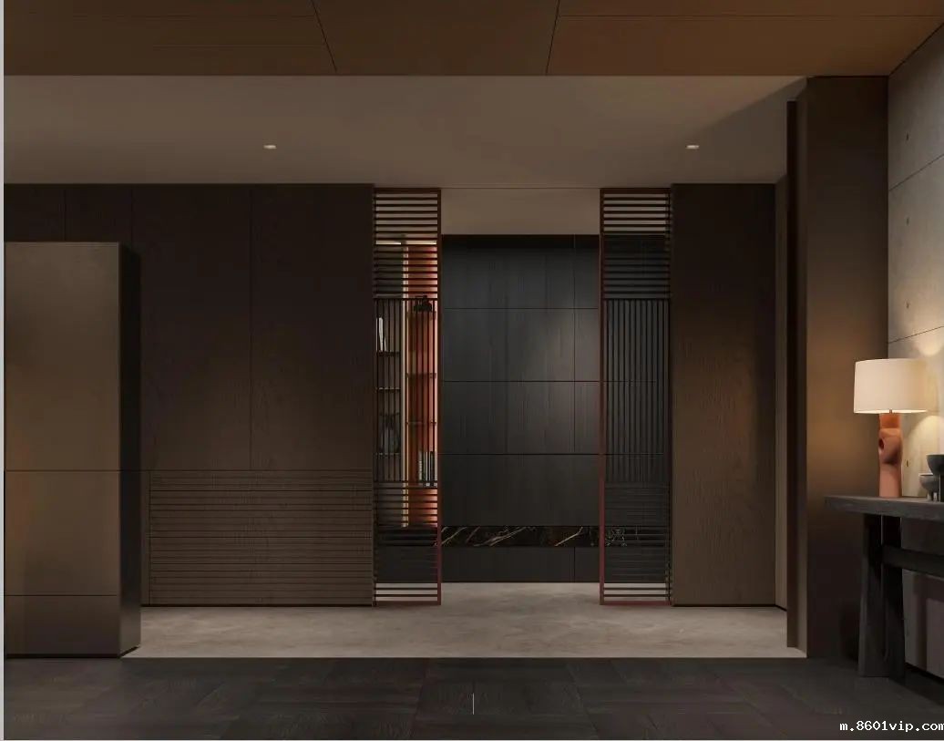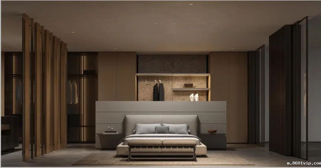 原木墙板铺陈温暖底色,铝制金属框线勾勒轻奢细节。天然肌理与工业美学交织,于静谧中窥见不凡格调。