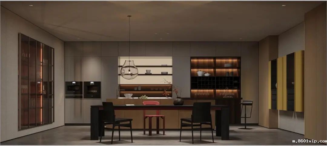 莹白柜门与柠檬黄、橡木色碰撞,构建大胆而和谐的色彩体系。通透玻璃柜打破沉闷,重构现代厨房的时尚语言。
