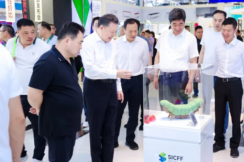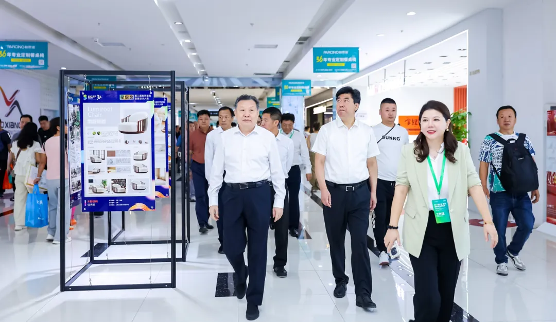 徐祥楠理事长、屠祺副理事长兼秘书长等领导嘉宾参观博览会,与企业代表深入交流,了解参展企业智能化生产、绿色低碳材料、原创艺术设计等前沿产品和行业趋势。徐祥楠理事长表示,中国·胜芳国际家具博览会已成功举办32届,为展示胜芳家具品牌,引领专业化、规模化、数字化转型贡献了积极力量,当前胜芳家具产业加快推进产业链、创新链、价值链融合,原创设计水平和创新发展能力不断提高,希望胜芳家具产业继续坚持特色道路、推动绿色升级,为行业发展贡献更大力量。